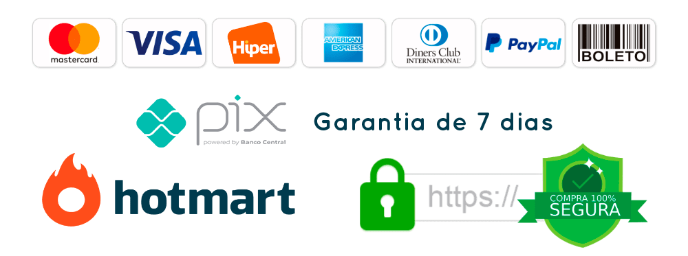 ✔️ Toda a nossa operação é realizada através da plataforma Hotmart, uma das maiores e mais seguras plataformas de venda de produtos digitais no mundo — com sistema de pagamentos certificado, criptografia de dados, antifraude e garantia de conformidade com a Lei Geral de Proteção de Dados (LGPD).