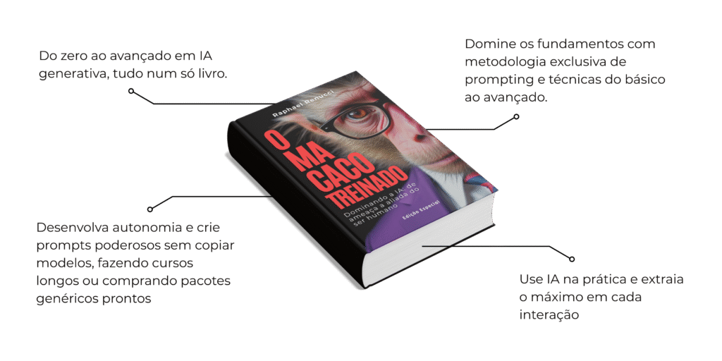 Pare de jogar dinheiro no lixo com pacotes de prompts genéricos e cursos inúteis. Com o livro O Macaco Treinado você aprende tudo sobre IA e o MÉTODO por trás dos prompts que dão resultado. De quebra ainda ganha o acesso à todos os macacos treinados já desenvolvidos para profissionais e os que estão sendo construídos.