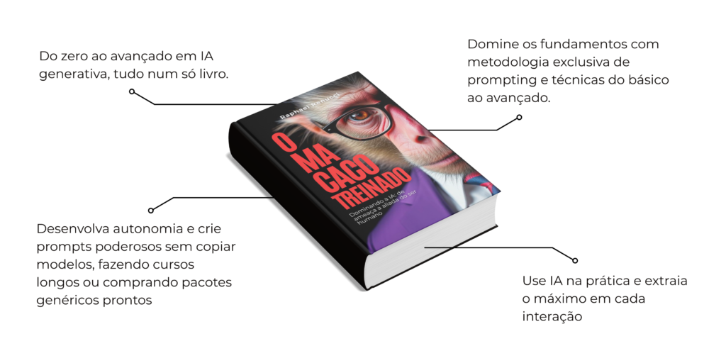 *Os macacos treinados (IAs) não são vendidos. O acesso à todos os APEs já desenvolvidos e os futuros é gratuito e vitalício sendo um benefício exclusivo apenas para quem adquirir o livro seja em versão e-book ou física.